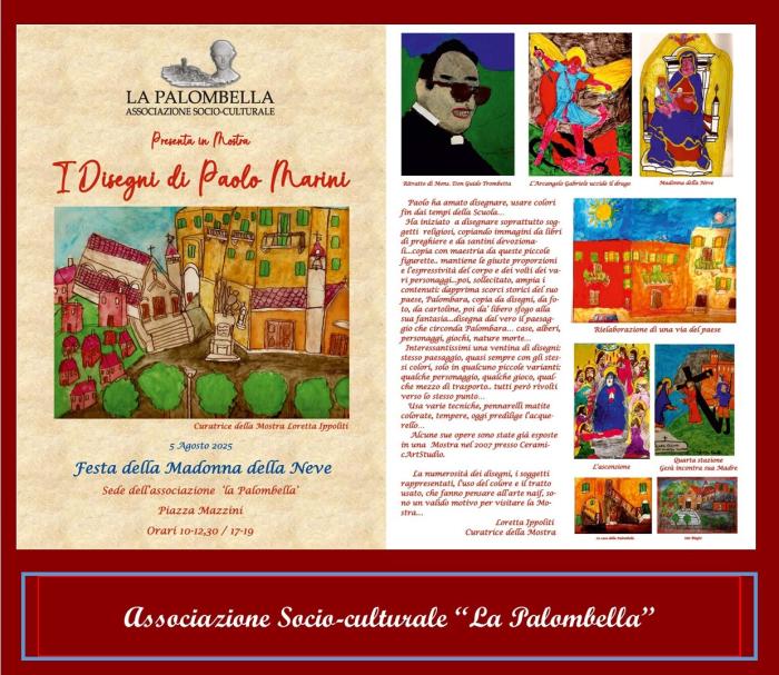 Il bravo Paolo Marini, novello “Ligabue” palombarese, con le sue opere in esposizione dimostra come l'arte, anche la più semplice, è un dono che può generarsi nelle persone più modeste. Paolo vi sorprenderà e vi stupirà.